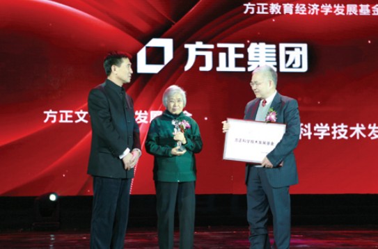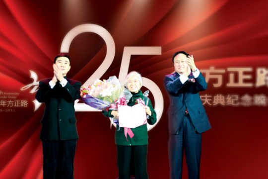 在方正集團(tuán)25周年慶典上,王選院士被授予“方正終身成就獎(jiǎng)”,方正集團(tuán)精心制作出版的《王選院士畫傳》同時(shí)被贈(zèng)予王選院士夫人陳堃銶教授。