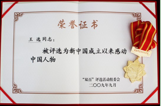 2009年9月10日,王選院士當(dāng)選“100位新中國(guó)成立以來(lái)感動(dòng)中國(guó)人物”。