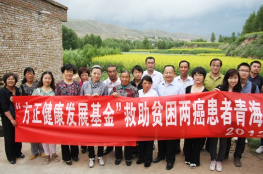 “方正健康發(fā)展基金”救助貧困“兩癌”患者青海省回訪團(tuán)一行合影。